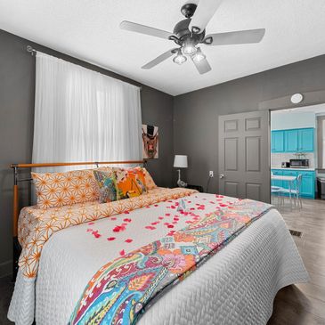 The Shanty Guest House has one private bedroom w King Bed topped w/ Memory Foam Lavender Infused Top & Pillow Buffet.